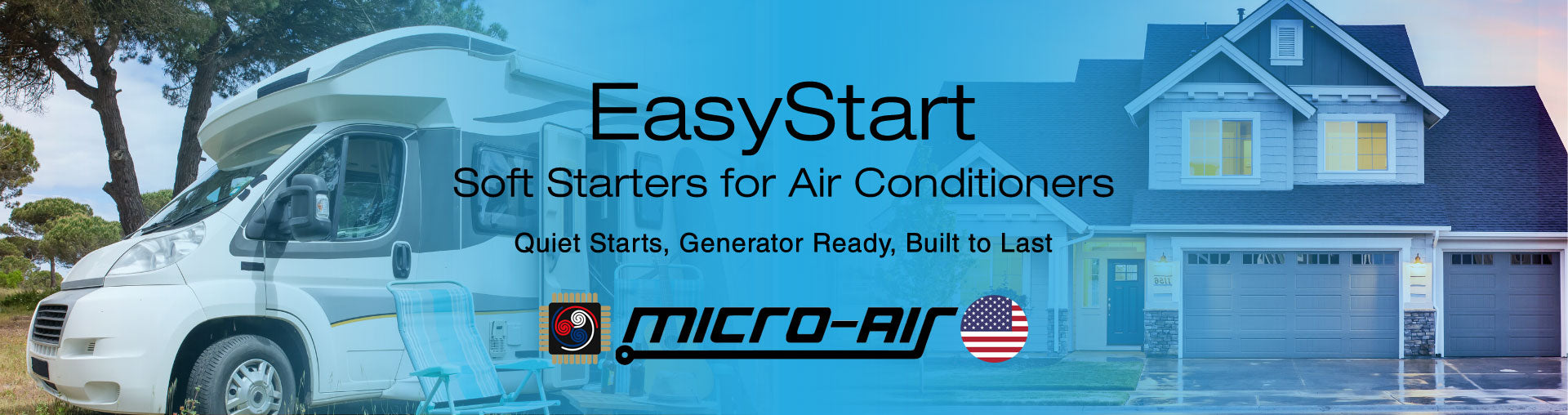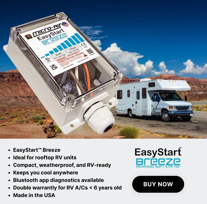 Micro-Air’s EasyStart™ is the #1 soft starter for both home and RV air conditioners—letting you start and run your A/C with up to 75% less in-rush current. Whether you’re braving a heatwave at home or boondocking off-grid, EasyStart delivers quiet, efficient starts that protect your compressor and extend your A/C’s life.